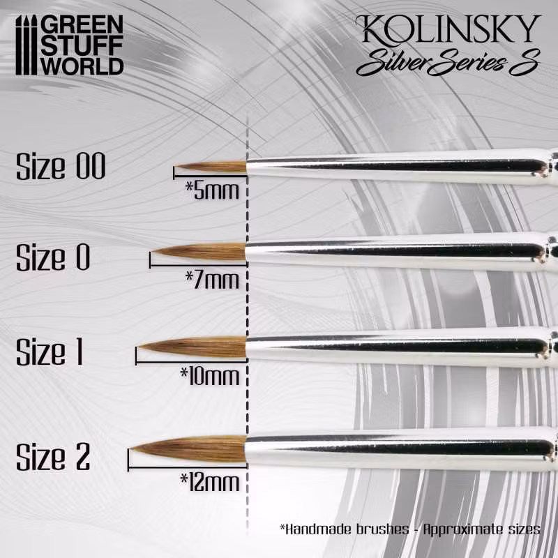 Kolinsky Brushes are widely recognized for their high quality and durability, the SERIE-S range with shorter and wider tips is suited for miniature painting by both beginners hobbyists, and experts, can handle intricate details, and provide greater control over the paint. They are particularly recommended for traditional painting, especially for fine and blending techniques using washes, glazes, inks, and other types of paints. Their versatility and ability to hold a fine point making them ideal for achieving sharp lines and detailed work in miniature painting.